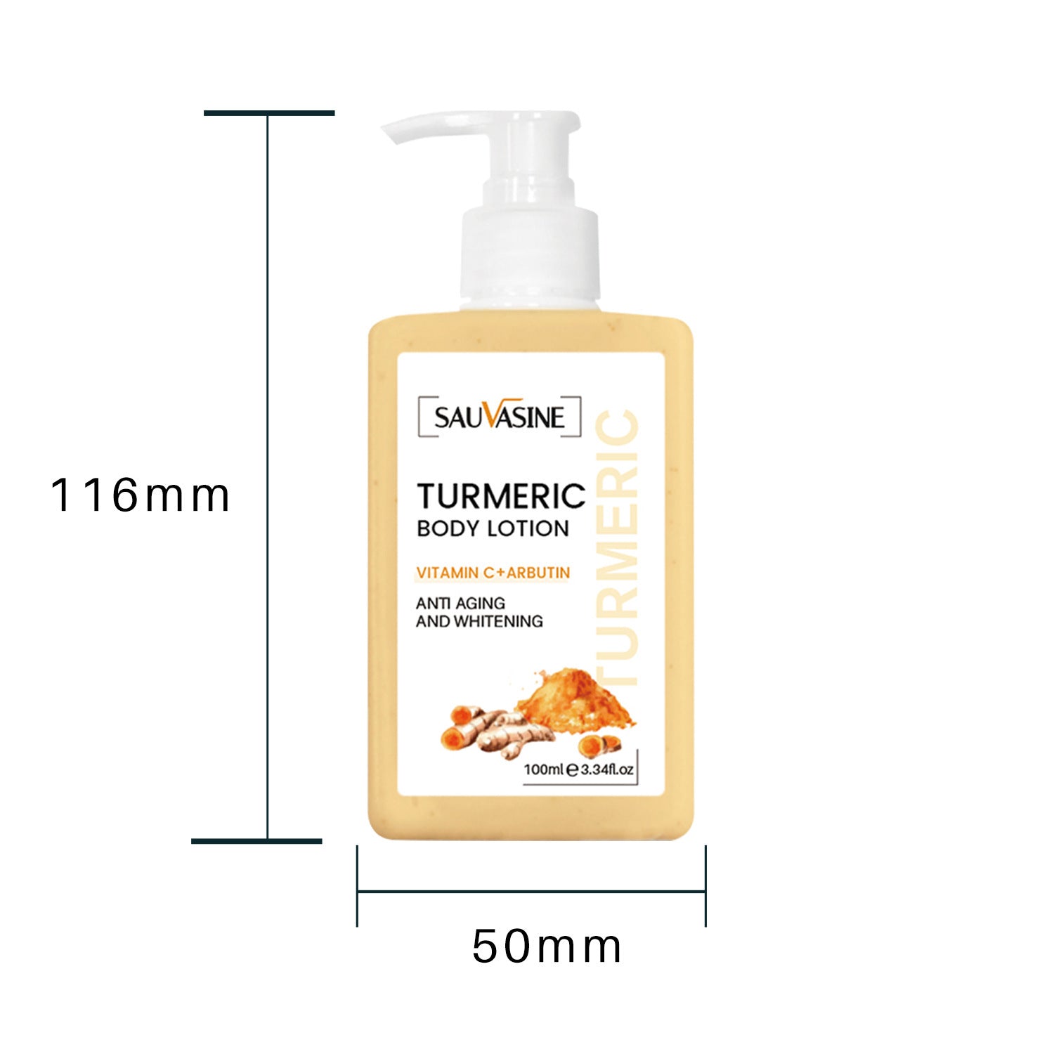 Tumeric Body Lotion is made with purest ginger, betaine, hyaluronic acid and other raw materials, skin friendly, and it is a great body cream.