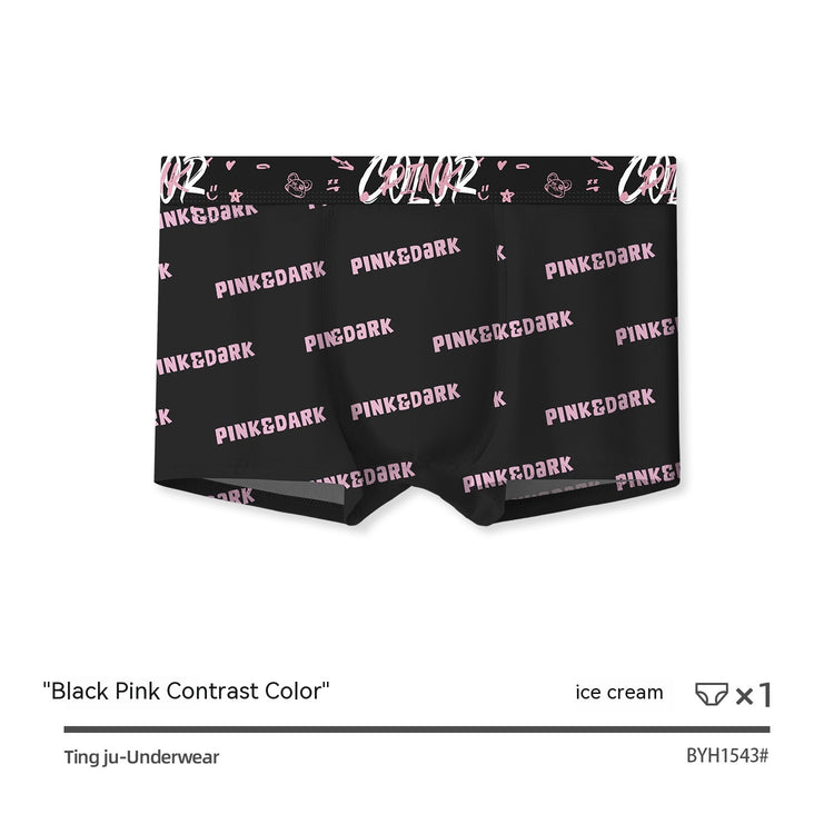Black Pink Breathable Antibacterial Crotch Mid Waist Boxer Briefs Men