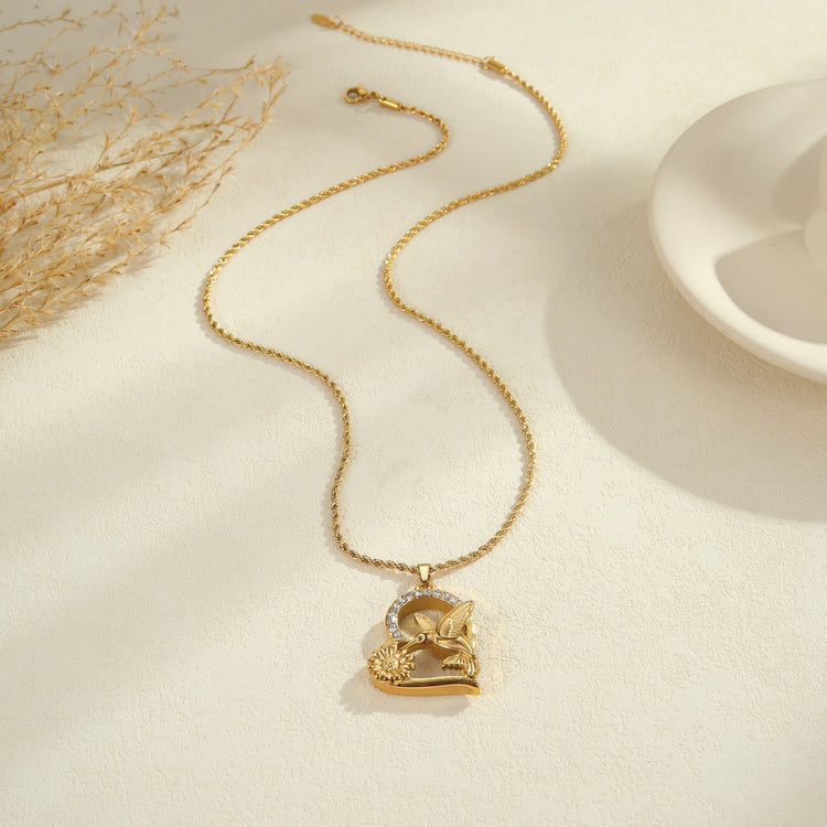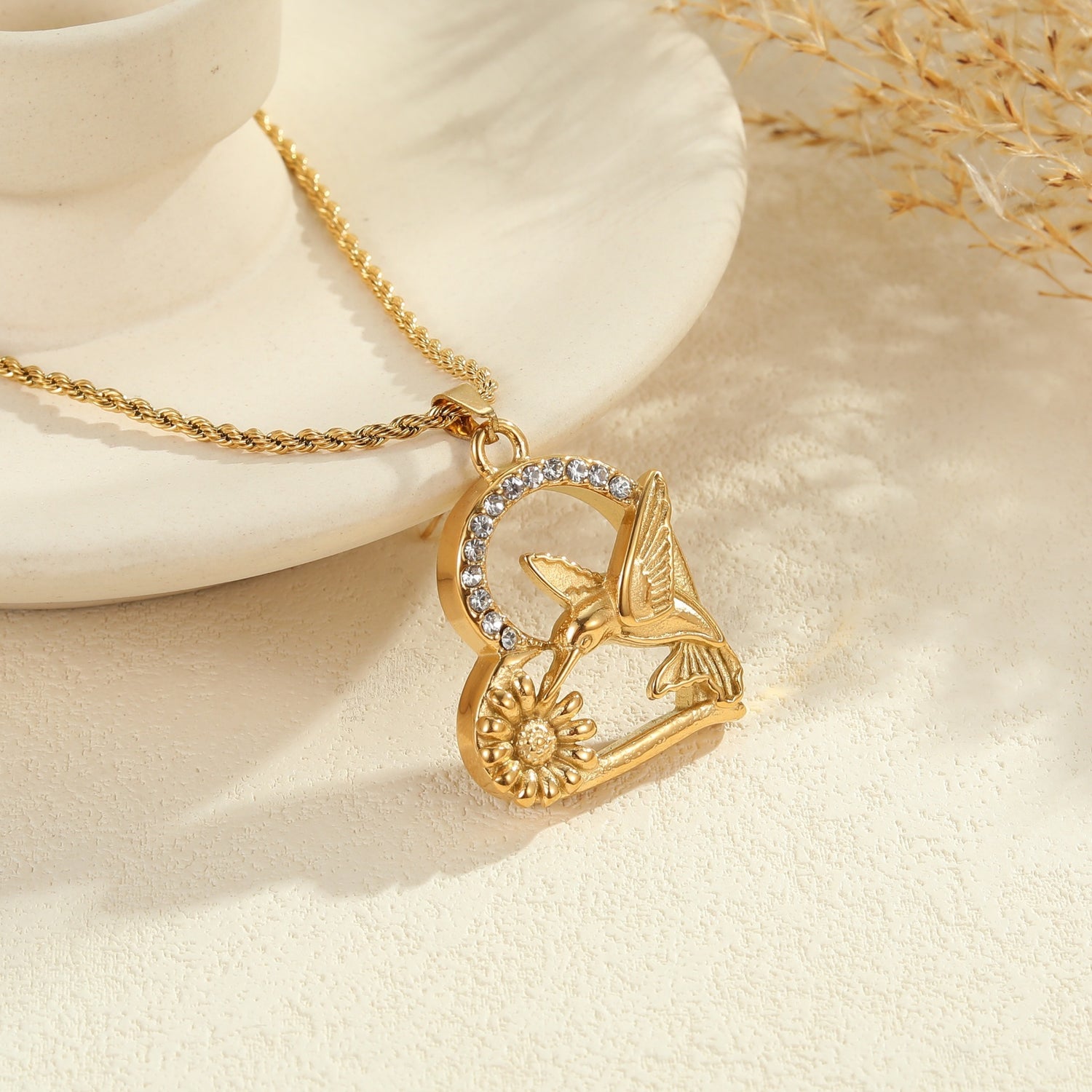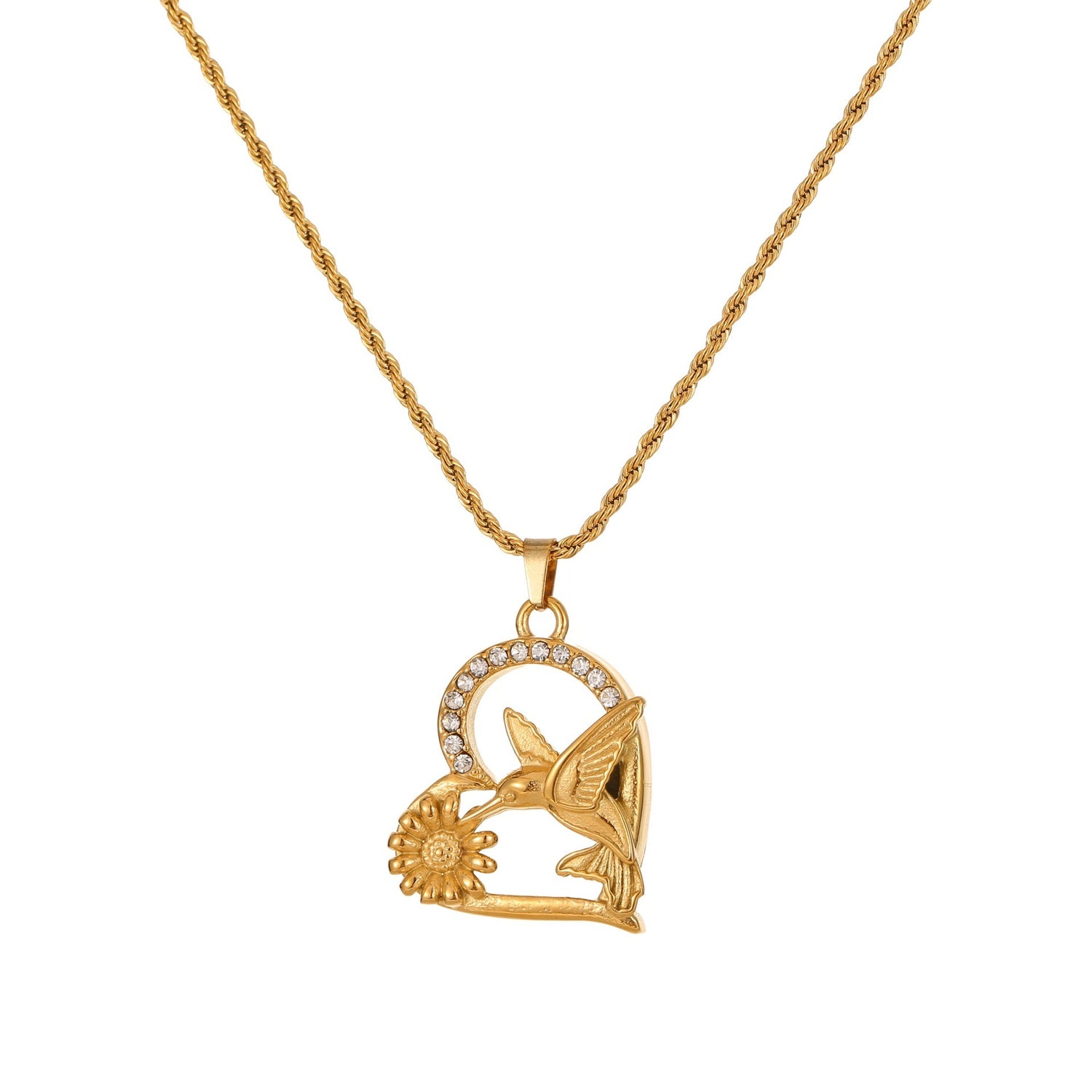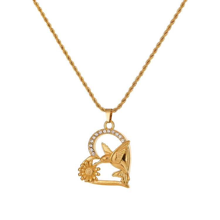 Design Sense Hummingbird Flowers Print Pendant Gold-plated Titanium Steel