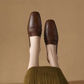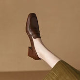 Women's Spring And Autumn New Medium Chunky Heel Soft Bottom Leather Shoes